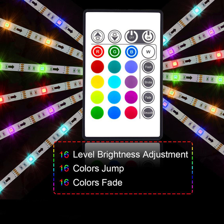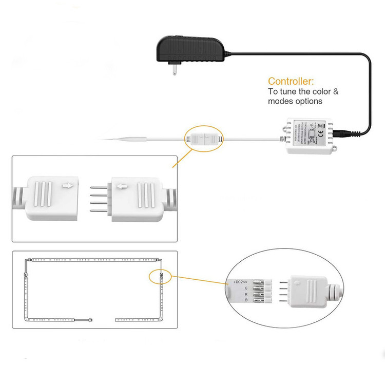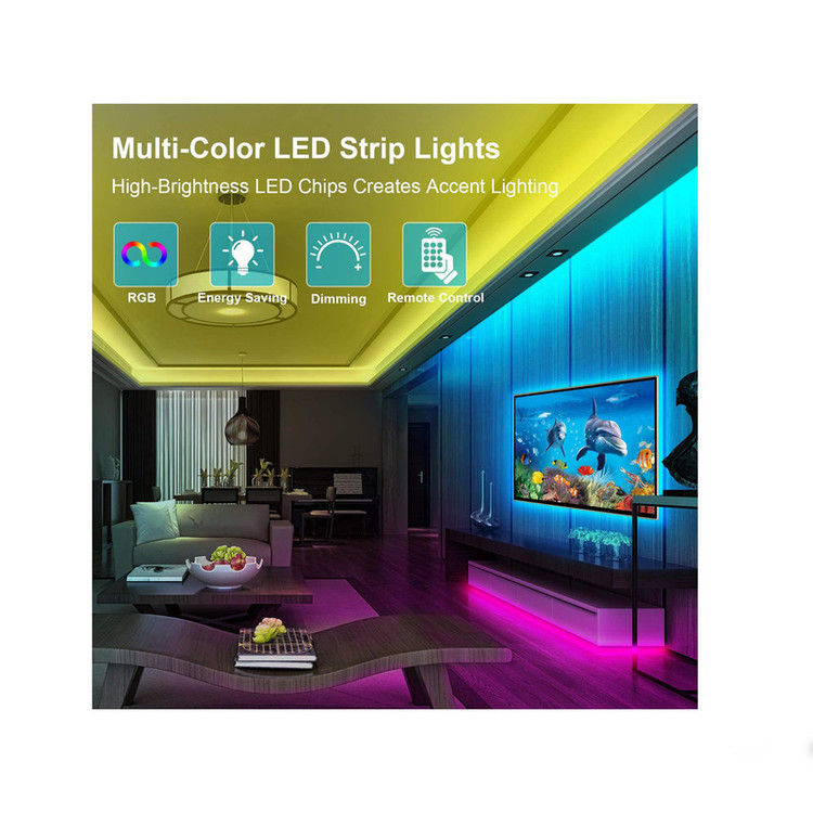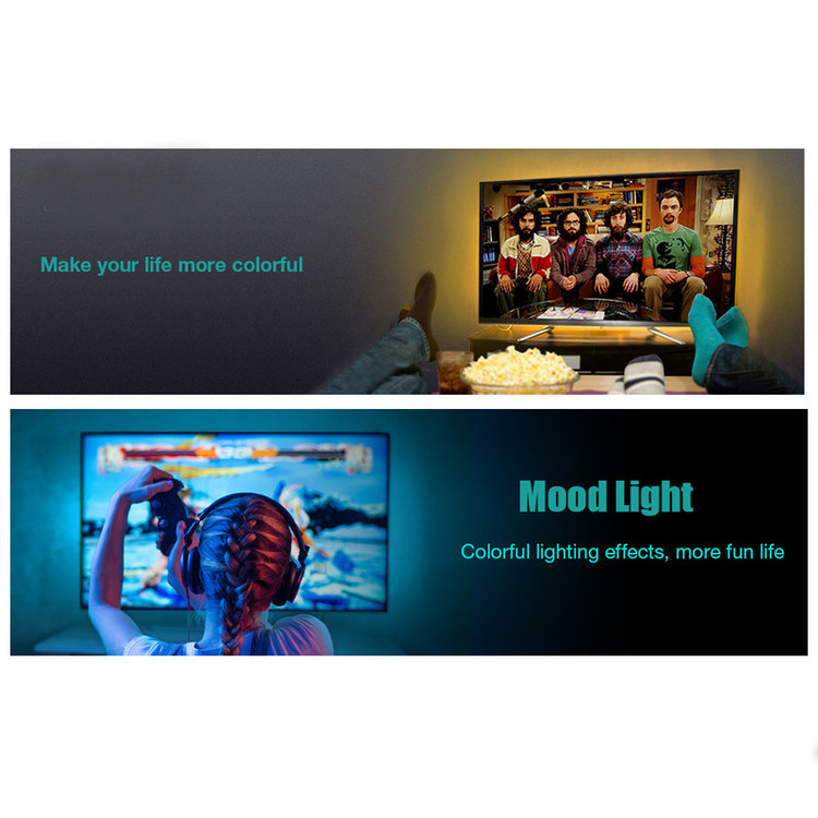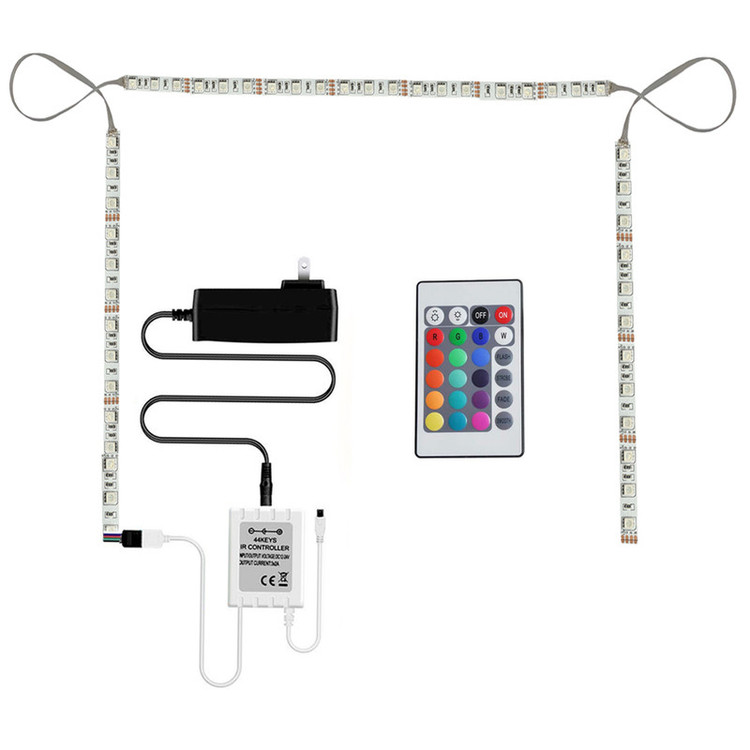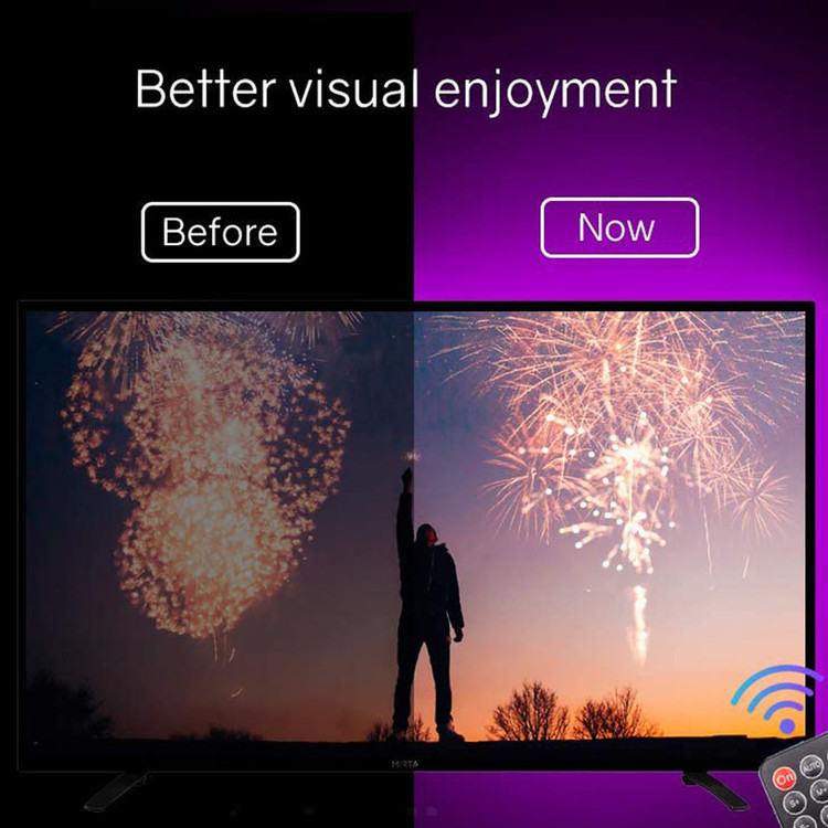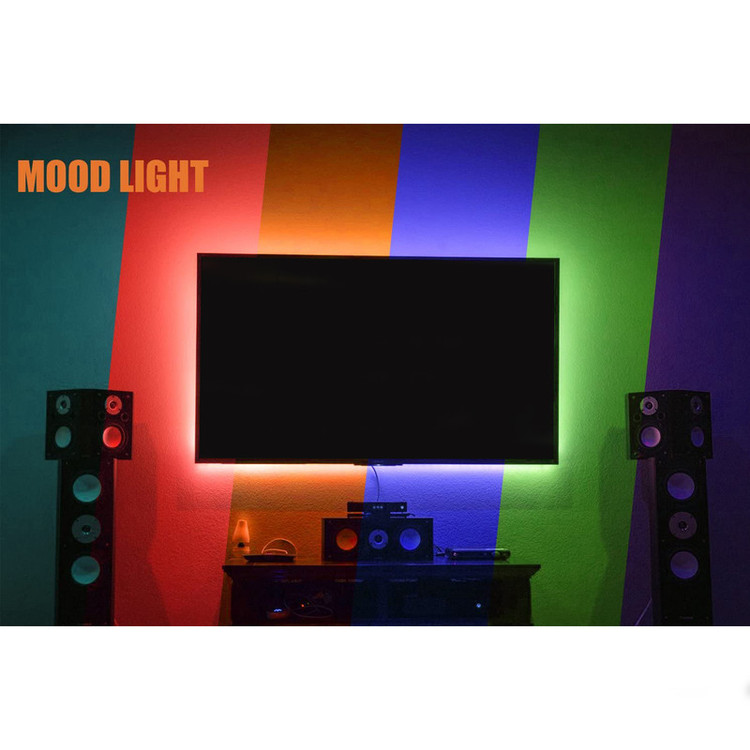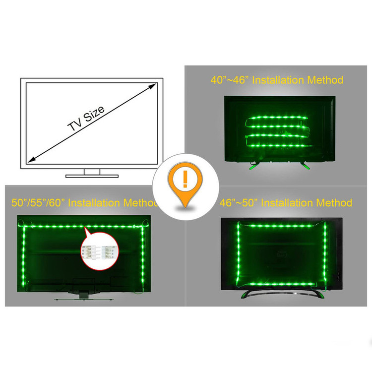قابل استفاده برای تلویزیون های 40 تا 60 اینچ نور پردازی بسیار زیبا 16 رنگ مختلف نور دارای ریموت کنترل بدون نیاز به نصاب بی خطر آداپتور 2 آمپری طول سیم آداپتور 260 سانتیمتر