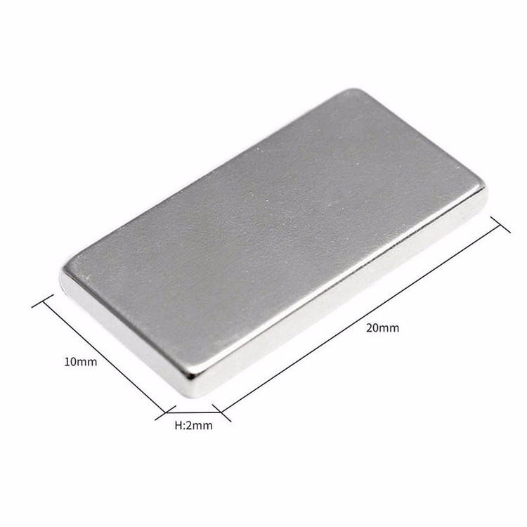آهنربای نئودیمیوم با طول 20میل و عرض 10میل و ضخامت 2 میلی متر - آبکاری نیکل مس نیکل - قطب بندی محوری-گرید35 - شار در مرکز آهنربا حدود 1430گوس و در گوشه 2020گوس می باشد