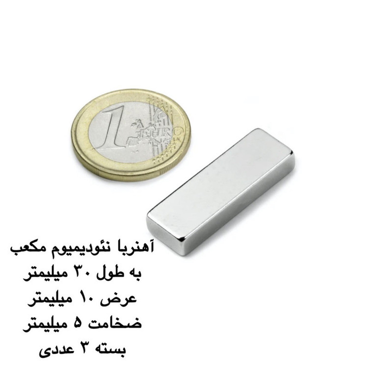 سایر توضیحات: آهنربای نئودیمیوم مکعب به طول 30 میلی متر و عرض 10 میلی متر و ضخامت 5 میلی متر بسته 3 عددی