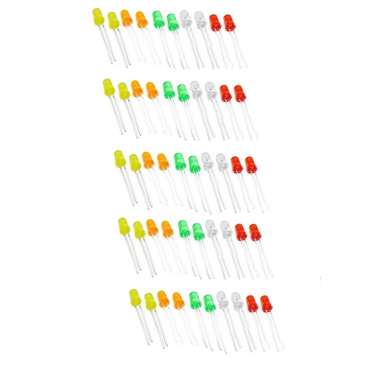 این ال ای دی ها 5 میل می باشد و در رنگ های مختلف خدمت شما دوستان عزیز ارائه می شود.شما می تواند رنگ مورد نظر خود را انتخاب کرده و از همان رنگ 50 عدد دریافت کنید. فقط اگر چند رنگ را انتخاب می کنید باید بگویم از هر رنگ تعدادی برای شما قرار داده می شود که در مجموع همان 50 عدد می شود.