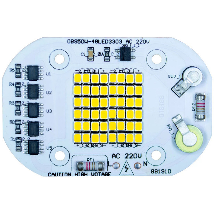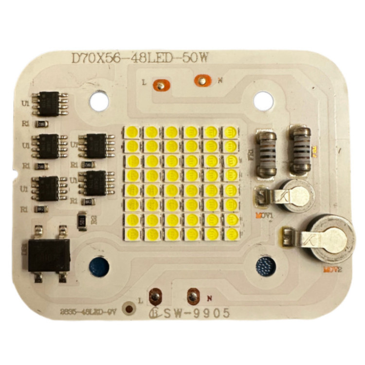 این چیپ مجهز به سنسور کنترل نور و دما و خازن آنتی شوک میباشد که هم از لرزش و چشمک زدن نور جلوگیری میکند و هم باعث افزایش نور چیپ میشود . این چیپ با برق مستقیم شهری (220 ولت) روشن میشود و در تعمیر یا ساخت لامپ ها , پرژکتور ها و پنل های ال ای دی استفاده میشود . جهت استفاده از این چیپها پیشنهاد میشود از خنک کننده آلومینیومی (heat sink) مناسب به همراه خمیر سیلیکون جهت انتقال دما به heat sink به منظور جلوگیری از افزایش دمای چیپ و کاهش عمر محصول استفاده شود . شار نوری این محصول 5500 لومن و طول عمر آن 40000 ساعت میباشد . روی چیپ دو حرف L و N وجود دارد که فاز و نول به آنها متصل میشود.