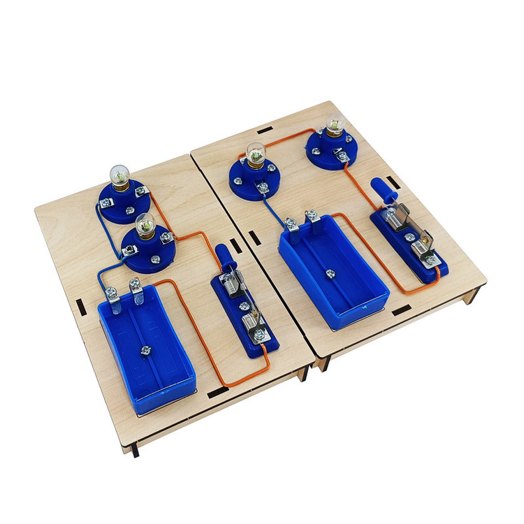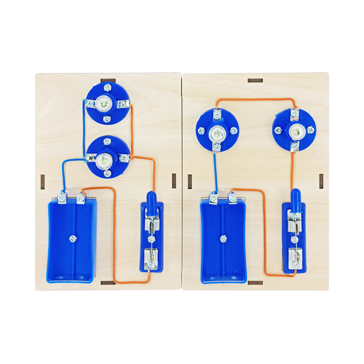 با استفاده از قطعات داخل کیت مدار موازی و سری را بر روی دو پایه جدا از هم می سازید