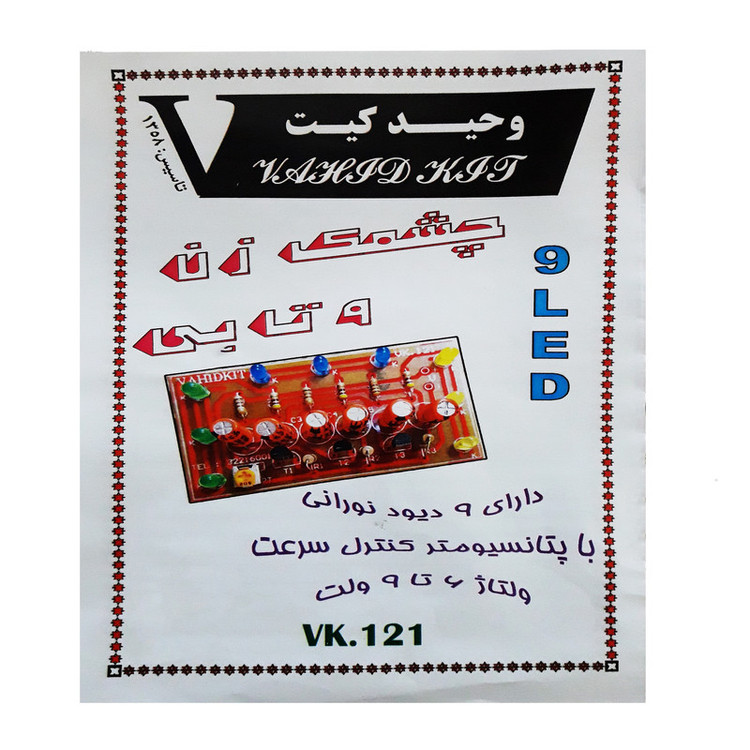 کیت ساده و جذاب دارای 9 دیود نورانی با پتانسیومتر کنترل سرعت کار با ولتاژ 6 تا 9