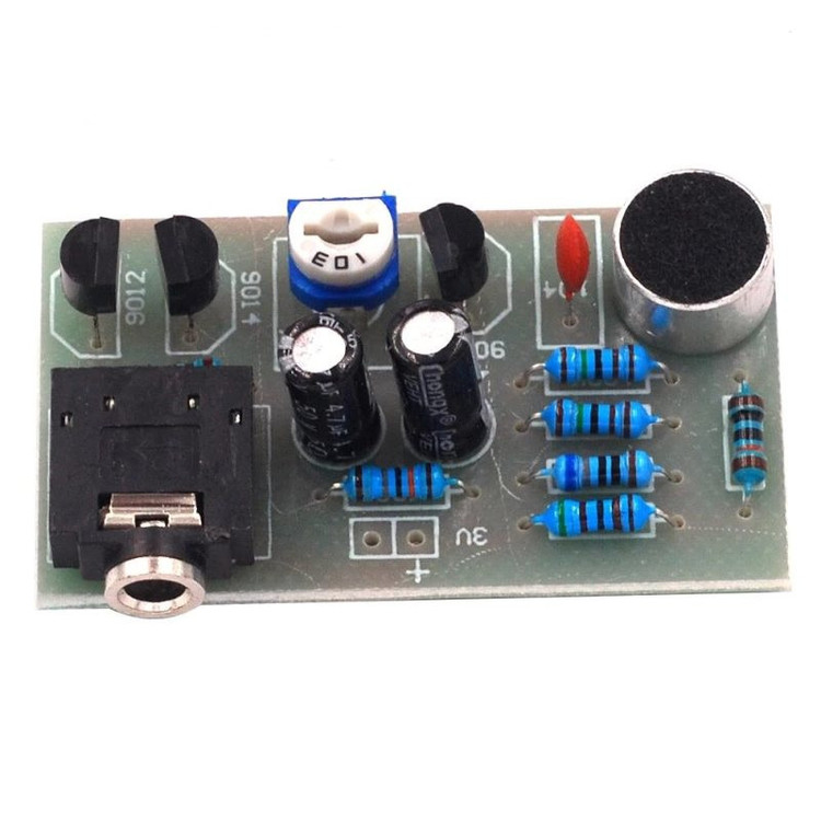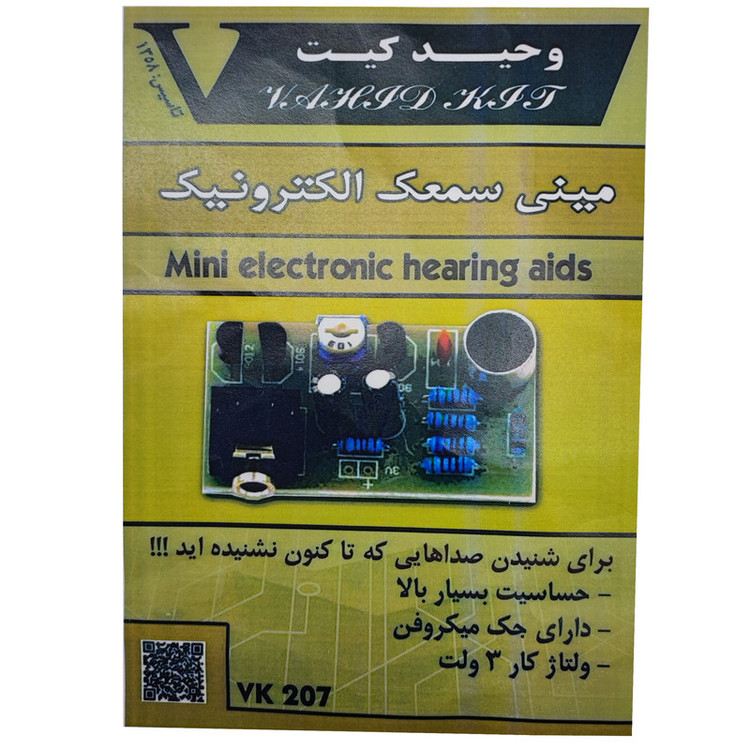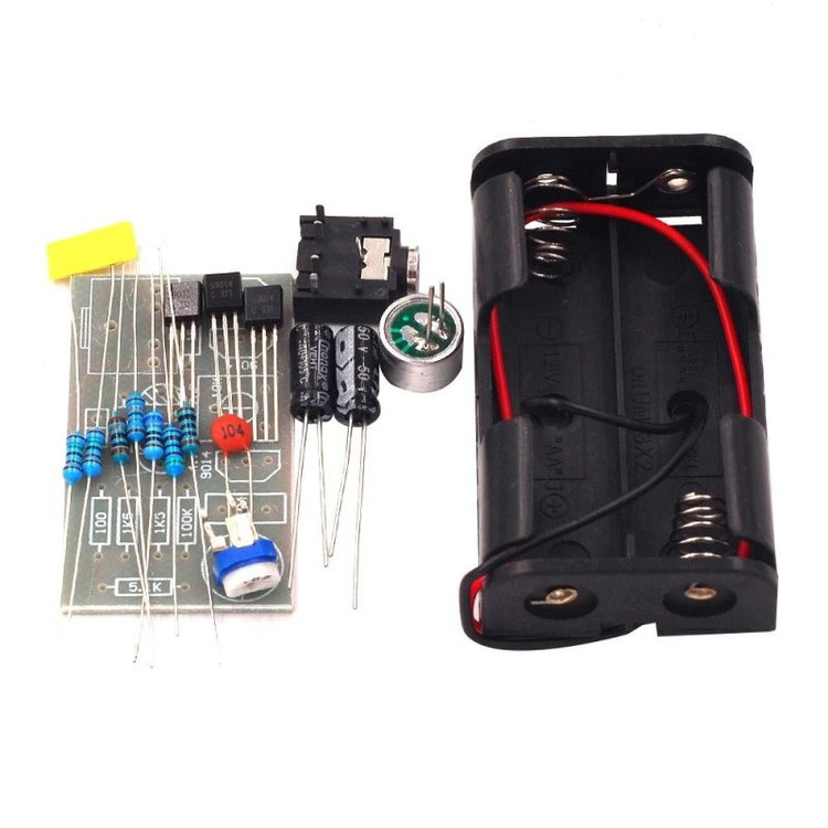 پارامترهای کیت: ولتاژ منبع تغذیه: 3 ولت (2 عدد 1.5 ولتی) خروجی صوتی: هدفون پلاگین صوتی 3.5 میلی متری اندازه برد 25 x 40 x 1.6 میلی متر
